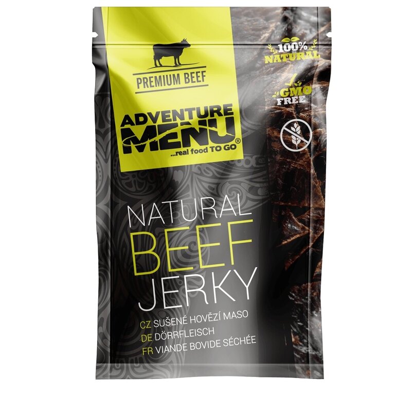 Díky obsahu až 77 % proteinů je hovězí jerky od Adventure Menu ideální svačinou na cesty, například pro výšlapy do přírody. Vysoký obsah bílkovin zajišťuje efektivní regeneraci svalů. Kvalitu podtrhuje i fakt, že na 100 g výrobku je použitých 320 g syrového masa.