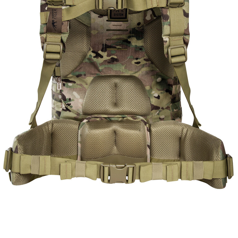 Nosný systém V2 Plus se přizpůsobí délce zad a díky vysokému kontaktnímu bodu na zádovém panelu umožňuje široký rozsah nastavení. Ramenní popruhy spolu s hrudním a odnímatelným bederním pásem drží batoh stabilně na těle a zajišťují komfort i při dlouhodobém nošení. Bederní pás lze odejmout a použít samostatně jako Warrior Belt.