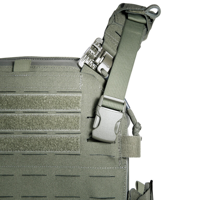 Batoh Modular Chest Rig od Tasmanian Tiger rozšiřuje možnosti chest rigu a nosiče plátů o zadní úložný prostor bez nutnosti klasického batohu. Jde o nástavbu, která se připojuje k nosnému systému a rozšiřuje jeho funkčnost. Umožňuje mít výstroj rozloženou přímo na těle, přehledně uspořádanou a okamžitě dostupnou. Navíc umožňuje vložení balistického plátu a rozšířit tak ochranu zad podle konkrétní konfigurace. Chest rig není součástí balení.