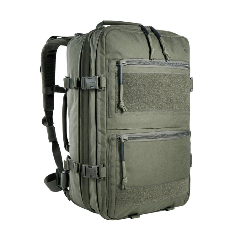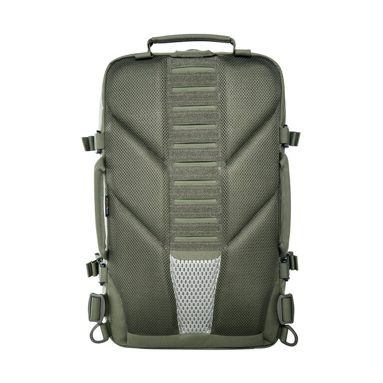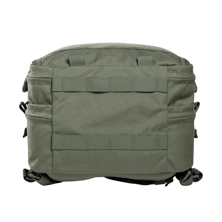 Přední daisy chain a MOLLE vazba umožňují připojení dalšího vybavení. Batoh má tři madla pro manipulaci, háček na zavěšení a je kompatibilní s hydratačním vakem. Díky modulární konstrukci si jej snadno přizpůsobíte podle konkrétního použití.