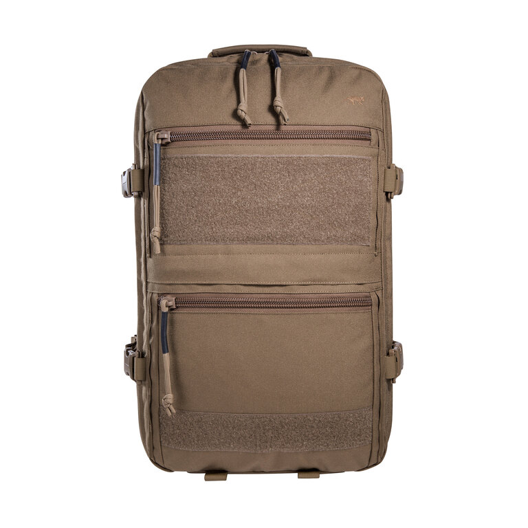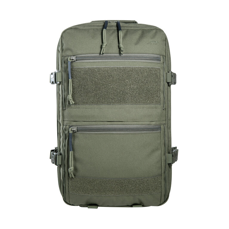 Přední komora obsahuje čtyři odnímatelné kapsy na zip s průhledným víkem, které jsou uchycené na suchém zipu. Ve víku najdete ploché organizéry pro dokumenty a drobnosti. Zadní komora nabízí velkoplošný velcro panel a dvě řady MOLLE vazby pro individuální uspořádání výstroje podle aktuální potřeby.