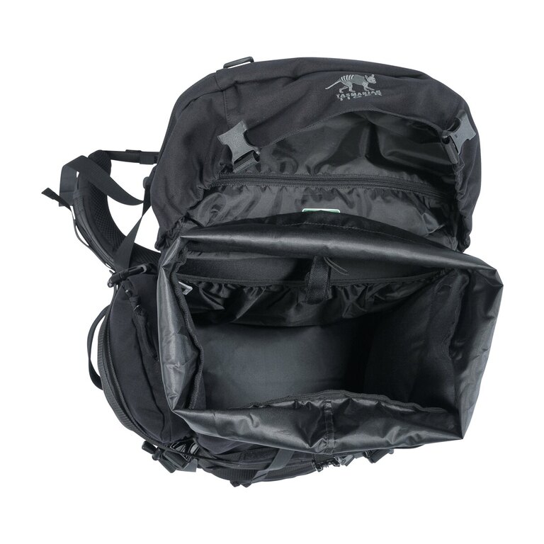 Přístup do hlavního prostoru batohu je snadný a rychlý. Stačí odejmout víko a otevřít vodě-odolný lem. Ve víku se nacházejí dvě oddělené kapsy. Jedna malá administrativní, do které uložíte věci jako průkazy a peněženku. Dále je zde i speciální prostor na dokumenty. Na vnější straně víka jsou očka, ke kterým můžete upevnit různou výbavu. Konstrukce batohu je kompatibilní s hydratačním vakem. Obsah batohu nemusíte ukládat pouze do hlavního prostoru, protože máte na povrchu na výběr několik dodatečných kapes na zip. Snadno si tak mezi věcmi udržíte pořádek. Na povrchu batohu jsou úchyty, které vám usnadní přenášení hikingových holí nebo podobných předmětů. Na přední stranu je také umístěn pevný Velcro panel. Připevníte na něj různé patchky se znakem nebo vlajkou. Na přední a zadní straně je pevná rukojeť pro přenášení v ruce. Pevné ramenní popruhy systému V2 a silné přezky unesou jakkoliv těžký obsah batohu. Použitý materiál polstrování a tvarování zad je promyšlen pro vaše maximální pohodlí. Nechybí ani port na anténu z hlavního prostoru.