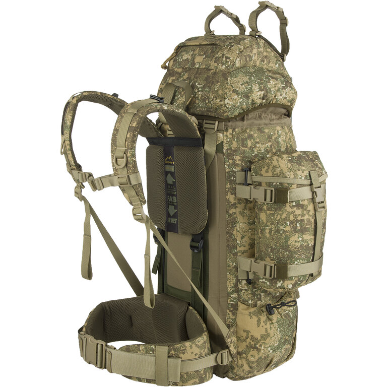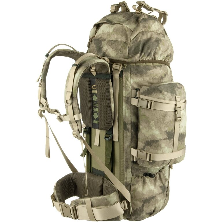K dalšímu uložení pak slouží popruhovina, batoh je také MOLLE kompatibilní, takže je možné k němu upevnit další MOLLE kompatibilní vybavení (sumky, kapsy a podobně). Batoh samotný je pak dodáván se 2 přídavnými bočními kapsami Wisport Reindeer ve velikosti M.