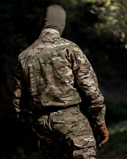 Blůza s maskovacím vzorem Multicam umožňuje přirozený pohyb i při dlouhodobém nasazení v terénu. Ergonomické rukávy a záhyby na ramenou podporují pohyblivost paží, zatímco nastavitelná šířka zad a manžet umožňuje přizpůsobit střih vaší postavě. Materiál tvoří kombinace 215Gsm polyesteru a bavlny s vodoodpudivou úpravou, která chrání proti vlhkosti a nečistotám.