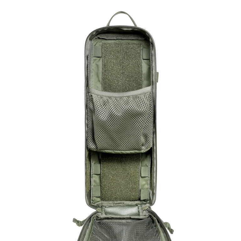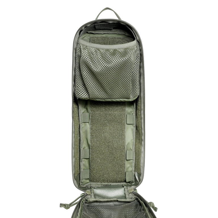 Uvnitř kapsy jsou MOLLE plochy, které umožní připojit další kapsičky nebo organizéry podle potřeby. Polstrovaný dělič lze nastavit tak, aby vznikly dvě samostatné sekce – ideální pro rychlé rozdělení vybavení. Síťované a zipové kapsy udrží pořádek i při rychlém vyjímání věcí.