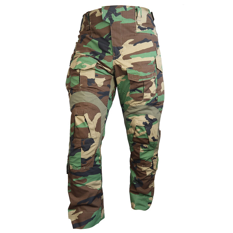 Kalhoty jsou vyrobeny ze směsi bavlny a polyesteru v poměru 50 / 50 a navíc v úpravě Rip Stop podle aktuálních standardů ČOS (český obranný standard). Díky této úpravě se maximálně zamezí vzniku trhlin a když se přesto nějakou podaří udělat, díky této úpravě se nešíří dál. Kalhoty přinášejí maskování v IR spektru, a to v celém jeho rozsahu od 400 nm do 1200 nm v souladu s platnými ČOS 108017 a ČOS 108019. Odolnost kalhot zvyšují elastické panely v místech největšího namáhání materiálu, panely jsou tedy osazeny v oblasti sedu, třísel a kolem kolen. Díky nim nehrozí roztržení exponovaných míst ani při extrémní zátěži. Použitý materiál je velmi prodyšný a přináší dobré odvětrávání těla, čímž zvyšuje uživatelský komfort. Poklopec kalhot se zapíná zipem a suchým zipem namísto klasického knoflíku, což usnadňuje zapínání / rozepínání. Zip na poklopci, stejně jako ty na kapsách, má jezdec osazený úchopem z paracordu pro snadnou manipulaci, a to i v rukavicích.