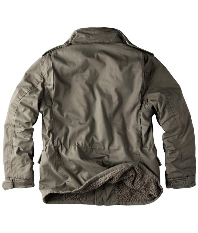 Bunda Surplus Paratrooper Winter s lehce ošoupaným, patinovým vzhledem slouží jako příjemná svrchní vrstva ochrany před povětrnostními vlivy. Je vybavena čtyřmi čtvercovými kapsami, které jsou chráněny patentkou neboli drukem. Patentky je osazena i léga zipu, na který se bunda zapíná, a celé toto řešení tak slouží jako další prvek izolace před zimou.