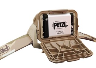 Součástí balení je dobíjecí akumulátor CORE, ale čelovka funguje i s klasickými AAA bateriemi. Díky technologii HYBRID CONCEPT automaticky rozpozná zdroj energie a upraví výkon. Při použití běžných baterií poskytuje nižší světelný tok, ale delší výdrž.