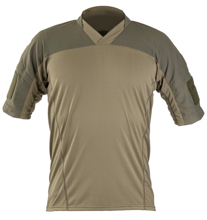 Trup a oblast pod pažemi tvoří ultralehký, prodyšný materiál Polartec Power Dry (technologie pro odvod potu), díky kterému zůstane tělo v suchu i při vysoké fyzické námaze. Rukávy, ramena a krk jsou vyztuženy lehkým softshellem – ideální ochranou při nošení těžké výstroje, jako jsou zbraně, batohy nebo popruhy.