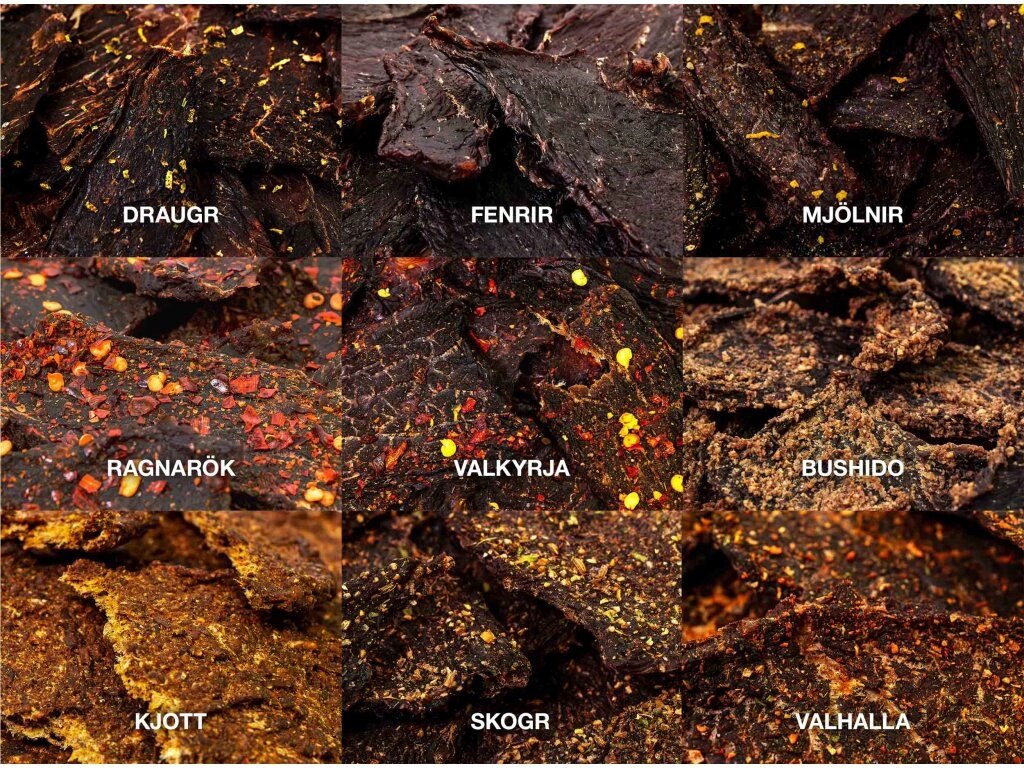| Součástí dodávky | Degustační výběr sušeného masa s různými příchutěmi (box obsahuje všechny aktuální příchutě Berserkr) |