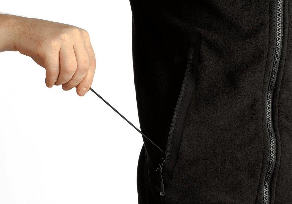 Mikina má na obou rukávech kapsy s velkým velcro panelem na upevnění ID štítku, vlajky nebo jiné oblíbené nášivky. Kapsy mají boční svislý vstup zapínaný na zip. Dále jsou vpředu dole 2 prostorné úložné kapsy s bočním šikmým vstupem zapínaným na zip. Uvnitř mikiny nalezneme vlevo 1 vnitřní síťovanou kapsu se svislým vstupem zapínaným na zip. Kapsa má osazen otvor na protažení kabelu sluchátek.