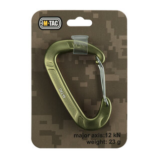Hliníková karabina Typ2 M‑Tac je asymetrická karabina ve tvaru D, která rychle a bezpečně připevní vaši výbavu na batoh nebo opasek. Díky lehkému, ale pevnému materiálu zvládne časté používání a odolá povětrnostním vlivům při turistice nebo outdoorových aktivitách. Umožňuje efektivní organizaci vybavení a nezatíží vaši výbavu nadbytečnou hmotností.