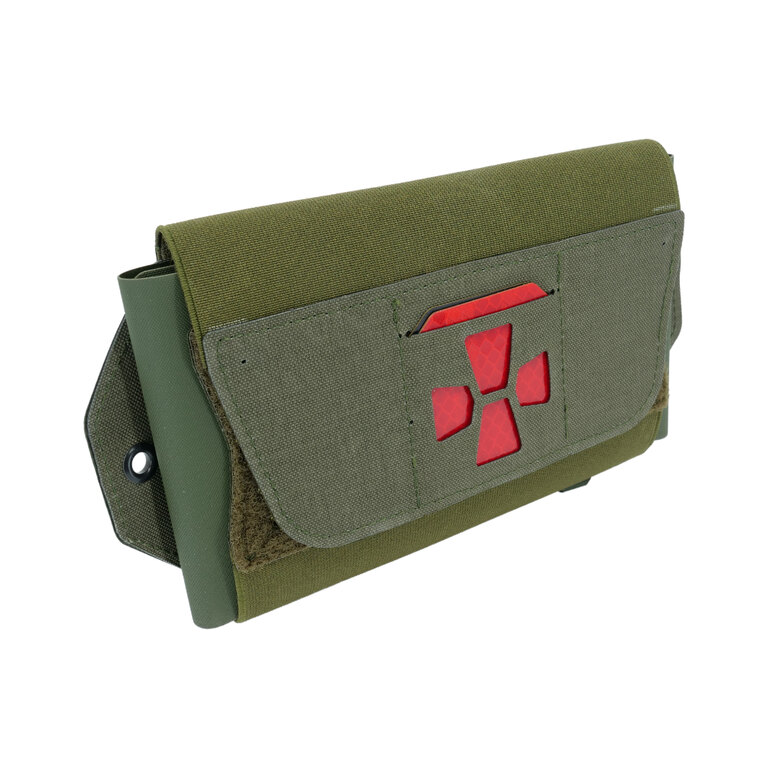 Vnitřní insert obsahuje elastické popruhy pro připevnění zdravotnického materiálu. Velikost sumky můžete pomocí suchého zipu upravit tak, aby se do ní plně zaplněný insert pohodlně vešel. Sumka obsahuje MOLLE vazby, takže ji lze jednoduše připevnit na jakékoliv MOLLE kompatibilní vybavení. Sumka je z vnější strany doplněna o označení zdravotnického kříže.