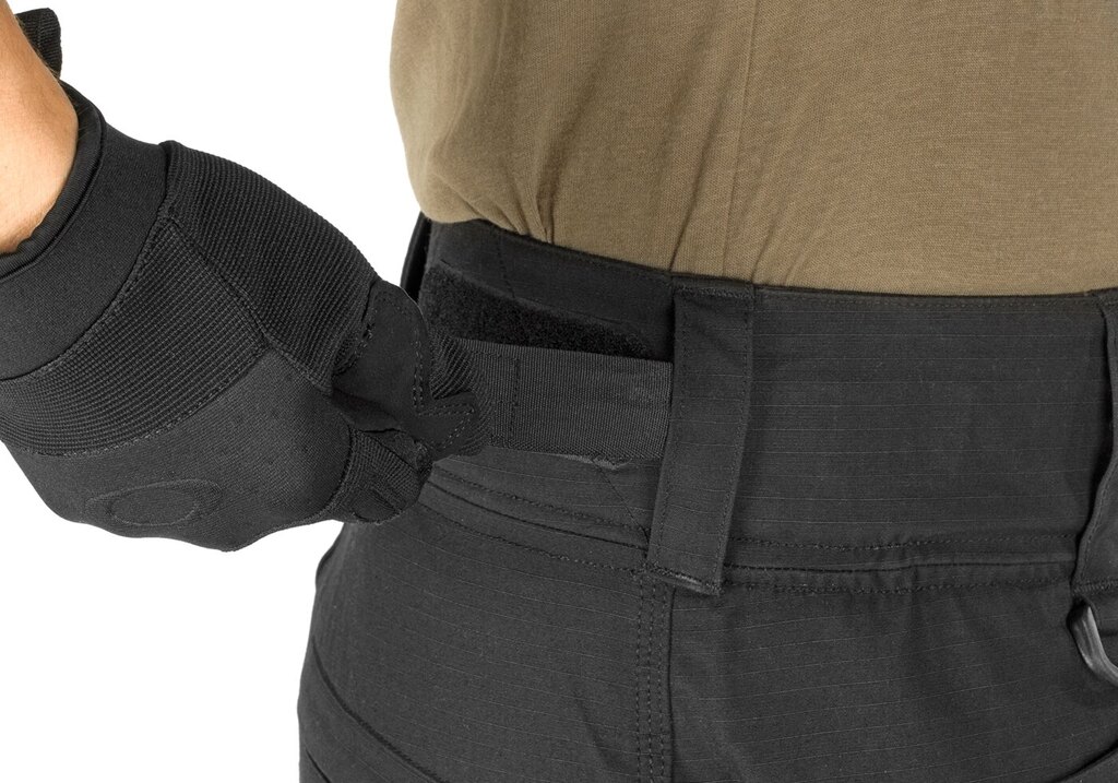 Kalhoty jsou v pase osazeny pevnými a dostatečně širokými průvleky a pojmou tedy i široký služební opasek. Obvod pasu je snadno nastavitelný díky elastickým páskům se suchým zipem umístěným na zadní straně, které zajišťují ještě větší pohodlí a přizpůsobují se pohybům těla.
