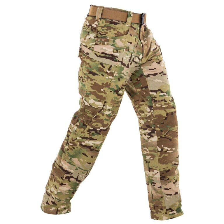 Produkt je vyroben z vysoce odolné látky, která kombinuje prodyšnou bavlnu a nylonovou Corduru. Zvýšenou odolnost kalhot zajišťuje dvojitá Rip Stop úprava, která má opravdu vysokou tržnou pevnost. Zároveň tkanina kvalitně odvádí vlhkost. Praktická je také kolenní dvojitá vrstva látky. Ta zvyšuje komfort uživatele v případě, že musí často klečet a zároveň zvyšuje životnost kalhot na tomto vysoce namáhaném místě. Kalhoty jsou navíc kompatibilní s vložnými kolenními chrániči, třeba těmi od firmy First Tactical.