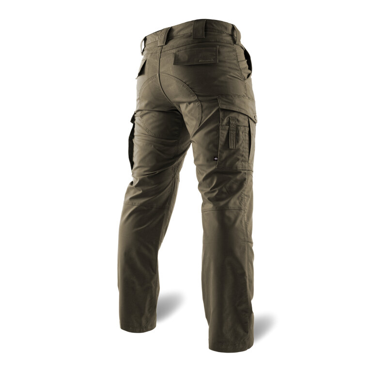 V pase jsou dostatečně pevné díky přidanému opaskovému tunelu a přitom zůstávají dostatečně pružné a automaticky se přizpůsobí při sedu, v kleče i při rozsáhlých a náročných pohybech. Kalhoty mají úpravu Ripstop odolnou vůči prodření a roztrhnutí. A pokud přeci jen vznikne trhlina, díky této úpravě tkaniny se nešíří dál.