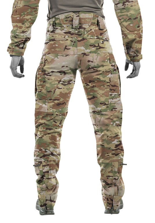 Pro operace v horkém počasí jsou kalhoty vybaveny velkými ventilačními otvory na stehnech, které lze otevřít pomocí zipu. Integrovaná moskytiéra umožňuje proudění vzduchu a zároveň chrání před hmyzem a nečistotami. Konstrukce kolen je kompatibilní s modulárním systémem UF PRO a nabízí pětistupňové nastavení výšky chráničů, což umožňuje individuální přizpůsobení podle potřeby.