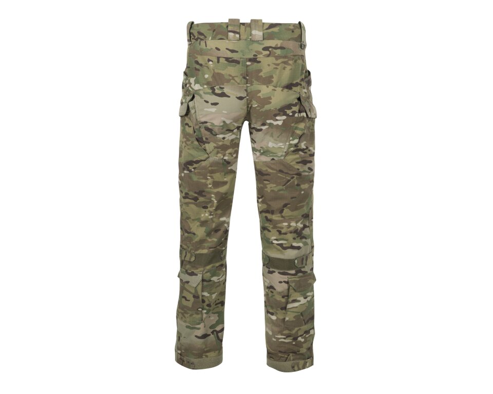Na kalhotách nalezneme dvě klasické kapsy na ruce se zesílenými okraji na klip vybavení jako je například nůž nebo svítilna. Dále zde jsou dvě přední kapsy na zip s vnitřním organizérem, dvě stehenní kapsy kryté klopou zapínanou na suchý zip, které lze použít jako improvizované pouzdro na prázdné zásobníky – dump pouch. Další dvě kapsy kryté klopou zapínanou na suchý zip jsou osazeny dole na lýtcích.