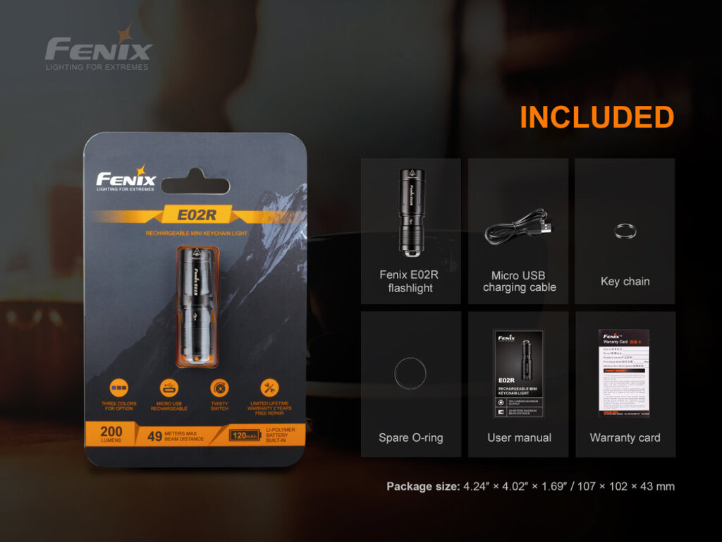 LED svítilna Fenix E02R vás hned na první pohled osloví svou miniaturní velikostí. Použitá LED dioda Cree XP-G2 S3 ale nabízí na své rozměry překvapivě dobrou svítivost, dosvit až 49 m a dlouhou životnost. Díky těmto parametrům vám posvítí na cestu i v té největší tmě.