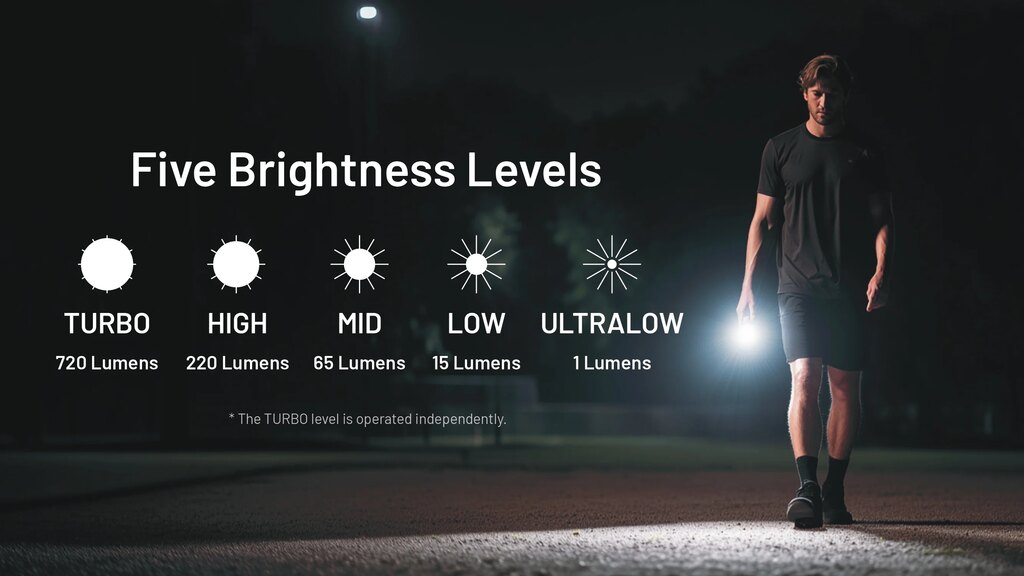 Kompaktní tělo a nízká hmotnost dělají z TIP3 společníka, který nepřekáží. Dá se nosit na klíčích, v kapse, připnout na batoh nebo použít s klipem pro svícení bez držení v ruce. Konstrukce počítá s běžným provozem, vlhkem i drobnými nárazy. Nabíjení probíhá přes běžný USB-C kabel a svítit lze i během dobíjení.