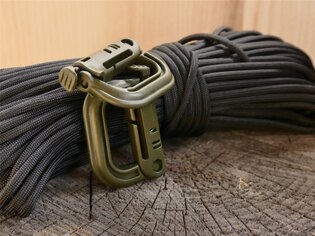 Speciálně navržená karabina Grimlock s V-Lock systémem. Slouží ke spolehlivému upevnění výbavy k výstroji. Díky speciálnímu systému můžete odepnout připojený doplněk bez toho, aby se karabina uvolnila celkově. Karabinu stačí otevřít a navléci na popruh systému. Otevření karabiny je velice jednoduché a rychlé, neboť se dá otevřít jedním stisknutím tlačítka. V případě potřeby tak můžete výbavu okamžitě odepnout a použít. Touto výbavou mohou být rukavice, světla, brýle a podobně.