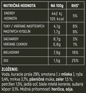 Krémové kuřecí s rýží a koprovou omáčkou v samoohřevné konzervě. Stačí aktivovat ohřev a během pár minut máte na stole poctivou porci, která zasytí a dodá sílu. Bez ohně, bez vody, bez starostí – ideální společník na cesty, do práce i do přírody.