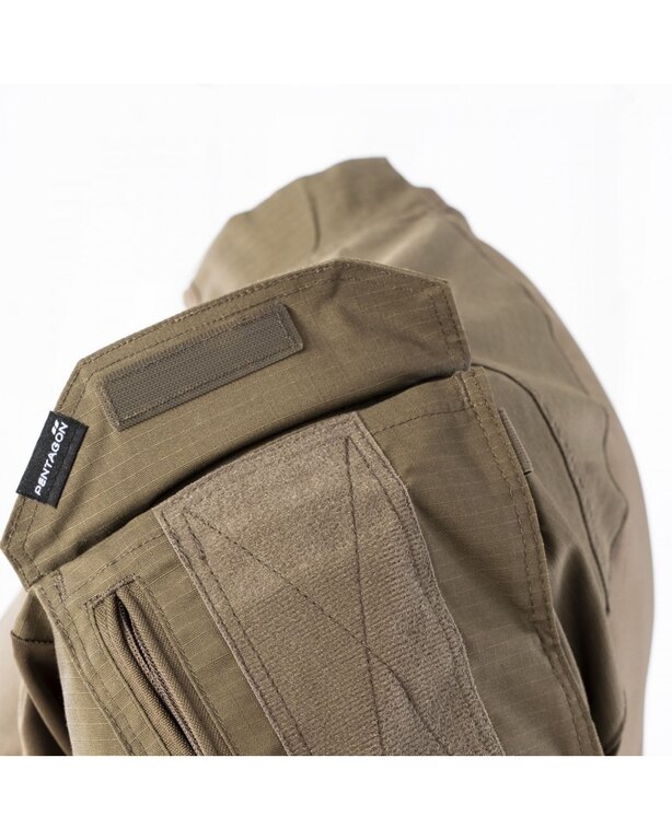 Na rukávech jsou dvě prostorné horní kapsy s hlavním i skrytým vstupem – ideální na EDC vybavení, malé nástroje nebo zdravotnický materiál. Na spodní části rukávů je systém MOLLE/PALS pro uchycení další výbavy a dvě svislé kapsy na svítilnu nebo Cyalume tyčinku. Všechno přesně tam, kde to má být, když se počítá každá vteřina.