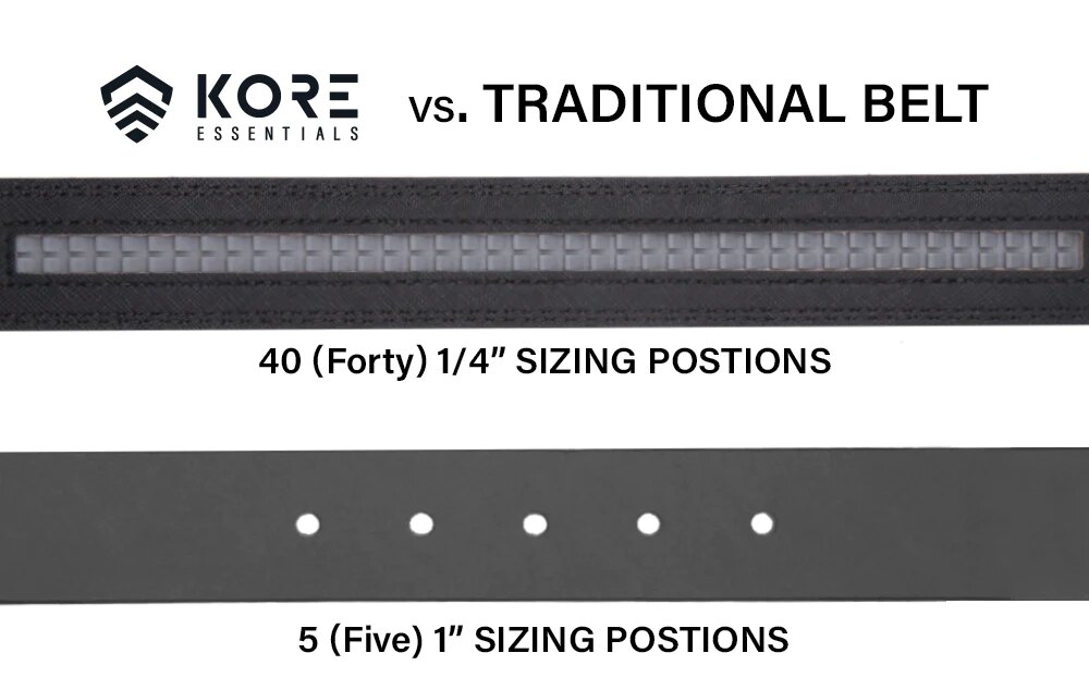 Společnost Kore Essentials nevyrábí pouze taktické opasky pro nošení zbraní, ale také stylové, komfortní opasky, jako je tento kožený model Kore Buffalo. Jeho výhodou je nastavitelná délka, a to v obvodech pasu od 24 do 44 palců (61 až necelých 112 cm). Ve vhodné velikosti ho lze jednoduše říznout a nasadit na něj sponu (ta není součástí balení).