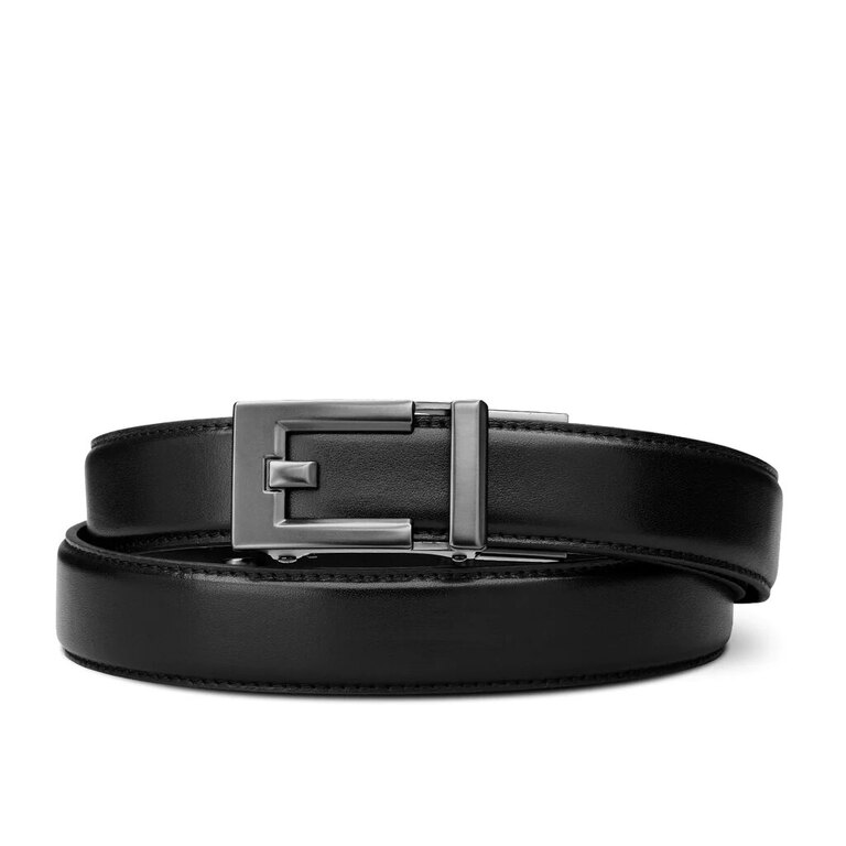 Tento opasek šířky 1,125" (cca 2,86 cm) má skrytou kolejnici s více než 40 nastavovacími body a mikro přírůstky po cca ¼" (asi 0,64 cm). Díky tomu si můžete napnutí opasku vždy perfektně nastavit. Po vydatném obědě si opasek uvolníte a naopak ve chvíli, kdy budete potřebovat, aby vám pořádně držel kalhoty, si ho zase stáhnete. Toto řešení navíc přináší minimalistický vzhled – na opasku nenajdete ani jeden otvor.