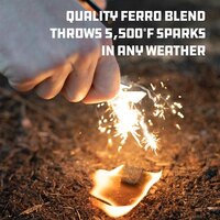 Ferroceriová tyč generuje jiskry o teplotě až cca 3 000 °C a zvládne více než 3 000 křesnutí. Funguje i za deště, ve větru nebo při nízkých teplotách, takže se na něj můžete spolehnout v různých podmínkách.