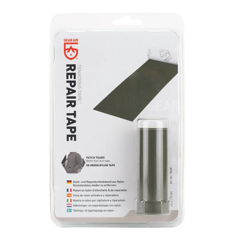 Lepicí páska Tenacious Repair od německé značky Gear Aid umožňuje opravy textilního oblečení a vybavení přímo v terénu. Dokáže opravit zátěrované, nezátěrované i membránové tkaniny. Snadnou aplikaci pásky zvládnete takřka kdekoliv a kdykoliv.