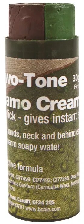 Maskovací barvy Bushcraft ve formě tuby od britské firmy BCB v barvách zelená/černá.