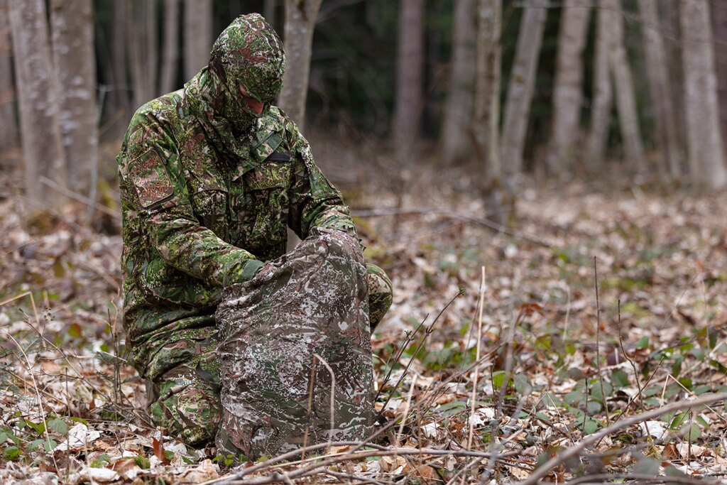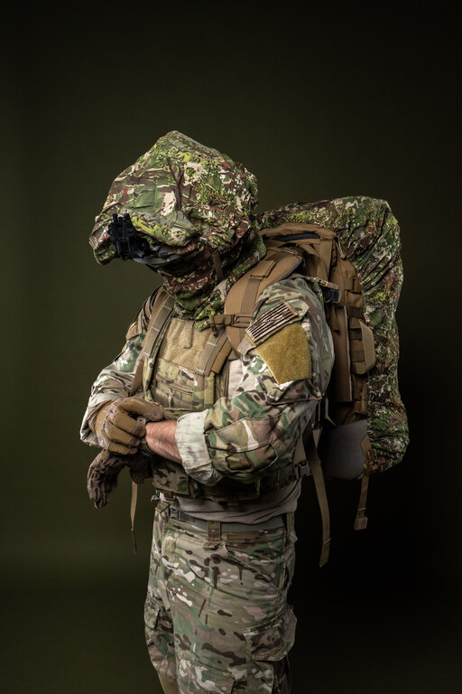 Batoh patří mezi největší prvky výstroje, které snadno prozradí siluetu postavy. Maskovací převlek pomáhá rozbít jeho tvar a sladit výstroj s okolním prostředím. Díky tomu batoh méně vystupuje z okolní vegetace nebo terénu a nepřitahuje pozornost při přesunu ani při zastávkách.
