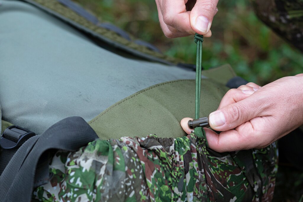 Maskovací převlek je navržený tak, aby nezabíral zbytečně místo v batohu, když není nasazen. Lehký materiál se snadno sbalí a v batohu nezabírá místo dalšímu vybavení. Když je potřeba, stačí ho rychle přetáhnout přes batoh a přizpůsobit aktuálnímu prostředí.