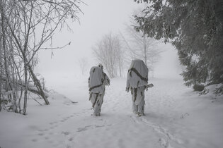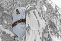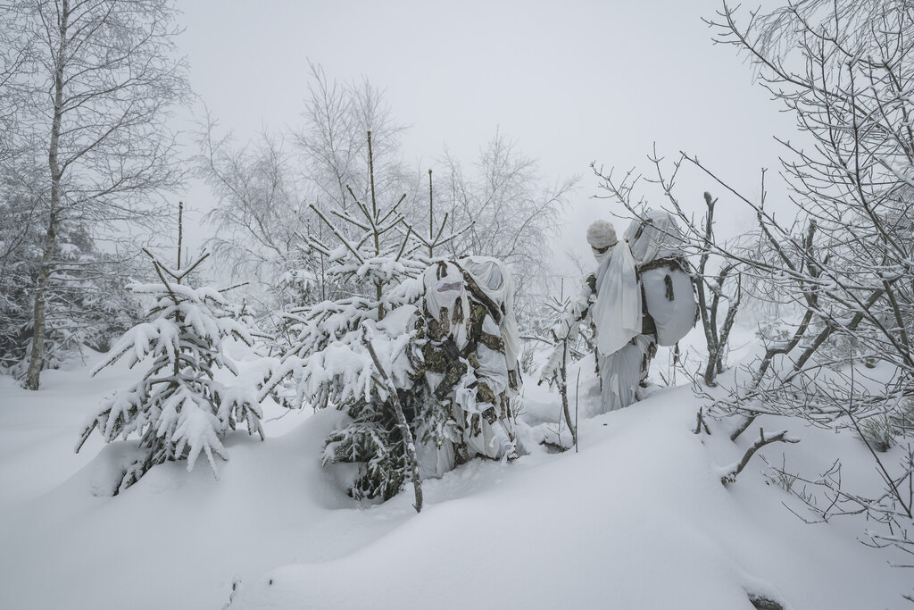 Oboustranné provedení umožňuje rychle přizpůsobit maskování aktuálním podmínkám. Jedna strana je čistě bílá a dobře zapadne do otevřeného zasněženého terénu. Druhá strana kombinuje bílý základ s maskovacími prvky, které pomáhají rozbít siluetu v prostředí, kde je sníh, ale zároveň i vegetace, větve nebo kameny. Stačí převlek otočit a batoh se přizpůsobí okolí bez další výstroje.