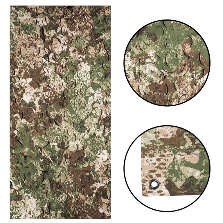 | Další specifikace | Laserem vyřezávaný vzor Všestranné použití Kovová očka v rozích Z vysoce kvalitního a odolného materiálu Maskování Civ-Tec® WASP (licencované Mil-Tec®) Pouze pro venkovní použití |