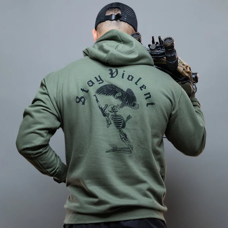 Některé věci se říkají nahlas, jiné se nosí na oblečení. Mikina Stay Violent přináší jasný postoj: jediný způsob, jak zastavit násilné zlo, je násilné dobro. Není to výzva – je to připomínka, že odvaha někdy vyžaduje i tvrdší přístup.