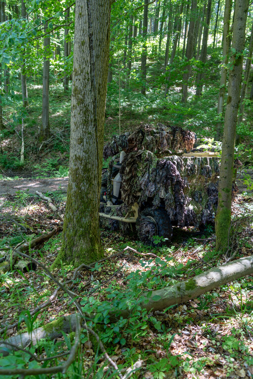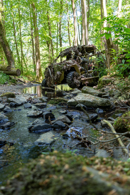 MRZR stojí na mobilitě – a kamufláž ji nesmí omezit. Ghosthood proto používá lehké a prodyšné materiály, které nezatěžují vozidlo a nebrání jeho pohybu v terénu. Konstrukce je navržená tak, aby se minimálně zachytávala o větve nebo podrost. Vozidlo tak zůstává plně manévrovatelné i v hustém porostu nebo v náročném terénu.