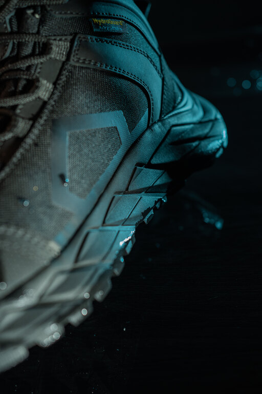| Další specifikace | Výborný odvod vlhkosti Voděodolné Zesílené nárazové zóny pro extra ochranu na špičce, patě a bocích před nárazy, pády a třením Integrované 3D tvarované bočnice pro zlepšení stability kotníku a celkové kontroly chodidla na nerovném terénu Kryt paty pro extra oporu zadní části chodidla a rozptyl nárazů Systém podrážky Tactical XR (Extra Rebound) Systém šněrování s háčky v horní části (na kotníku) Poutko/úchop vzadu pro usnadnění obouvání/zouvání |