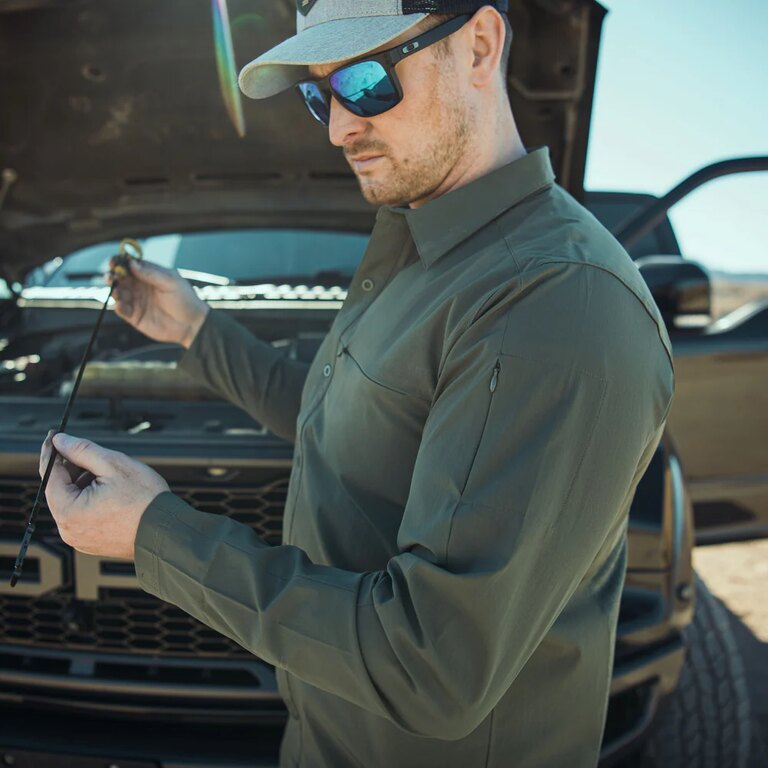 Košile disponuje několika kapsami – zipová kapsa na hrudi, zipová kapsa na rukávu a dvě mini kapsy u spodního lemu – takže nejdůležitější věci máte stále po ruce. Kompatibilita s CCW nošením umožňuje kombinovat komfort a snadný přístup k vybavení bez omezení pohybu.