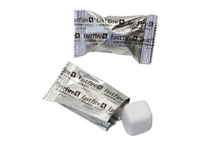 Říká se, že správný zálesák by neměl rozdělat oheň na více než dvě zápalky. Jsou však situace, kdy potřebujete vytvořit životodárné teplo rychle a spolehlivě. Pevný podpalovač FastStrike zapálíte snadno pomocí škrtadla, sirky či zapalovače. Díky nízkému bodu vzplanutí začne během okamžiku hořet plamenem s teplotou až 700 °C. Je dodávaný v samostatně balených kostkách o velikosti cca 2,5 cm x 2,5 cm. Každá kostka podpalovače vydrží hořet 10 až 12 minut. Takové množství však potřebujete zřídka. V případě rozdělávání ohně z běžného suchého dřeva můžete kostku rozdělit na menší díly, které hoří 2 až 3 minuty. Díky speciálnímu složení podpalovač nevydává žádný dým, ani zápach. To ocení zvláště dno vašeho nádobí, pokud ho budete používat k nouzovému vaření. Plamen je stabilní, odolává větru i dešti. Nespotřebovaná kostka po uhašení rychle vychladne a je připravena k dalšímu použití.
