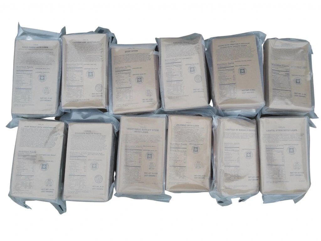Jídla jsou připravena podle islámských pravidel Halal, což zaručuje, že jsou povolená a bezpečná ke konzumaci pro muslimy. Každý balíček má hermeticky uzavřený obal, minimální dobu trvanlivosti dva roky a obsahuje výběr menu od dušeného hovězího masa po kuřecí speciality či vegetariánské varianty.
