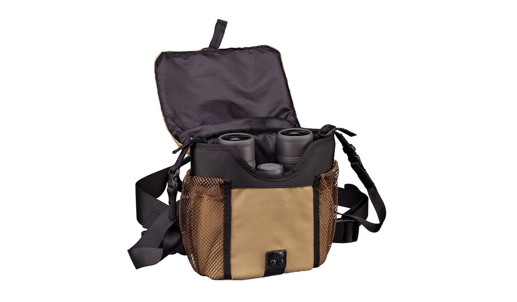 Pouzdro je vybaveno úchyty na připevnění k dalekohledu, čímž se předejde náhodným nechtěným pádům binokuláru. Postranní síťované kapsy poslouží na uložení různých krytek, filtrů a jiných malých předmětů, které mohou být příslušenstvím dalekohledu. Otevřený horní vstup těchto kapes zajistí rychlý přístup k uloženým věcem. Zadní síťovaná kapsa s horním vstupem zapínaným na zip pojme větší předměty, jako je například mobilní telefon.