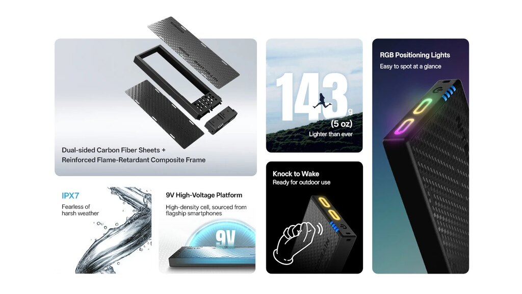 NB10000 Gen4 je vybavena funkcí Knock to Wake, která umožňuje probudit zařízení poklepáním. RGB poziční světla usnadňují orientaci ve tmě. Součástí balení je kabel s poutkem, který slouží jak k nabíjení, tak k uchycení powerbanky.