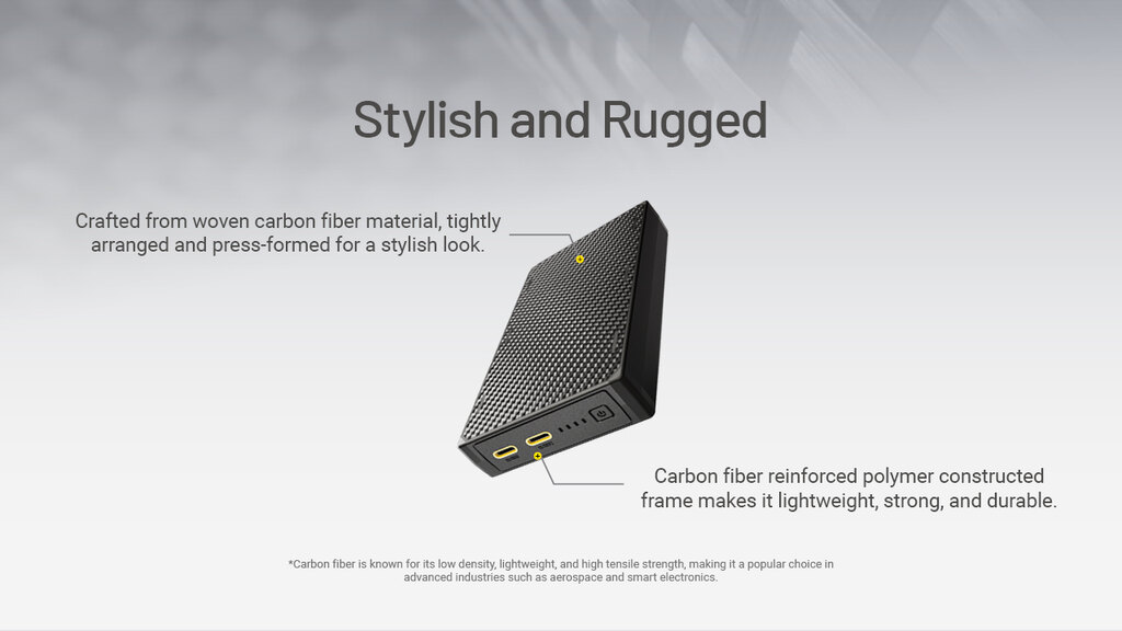 Powerbanka Nitecore NB20000 Gen3 přináší pořádnou dávku energie v těle z karbonu. Váží sotva víc než půl plechovky piva, přesto zvládne dodat šťávu i při náročných podmínkách. Stvořená pro pohyb – ať už jde o víkend v horách nebo expedici, kde zásuvky nerostou.