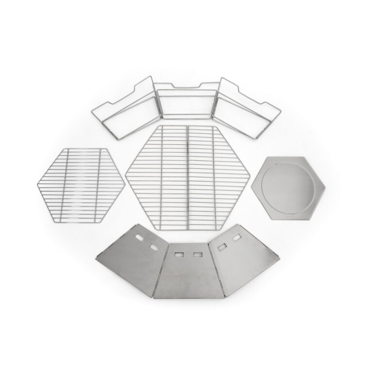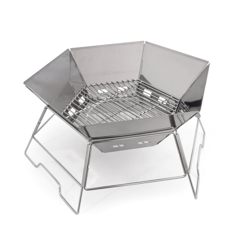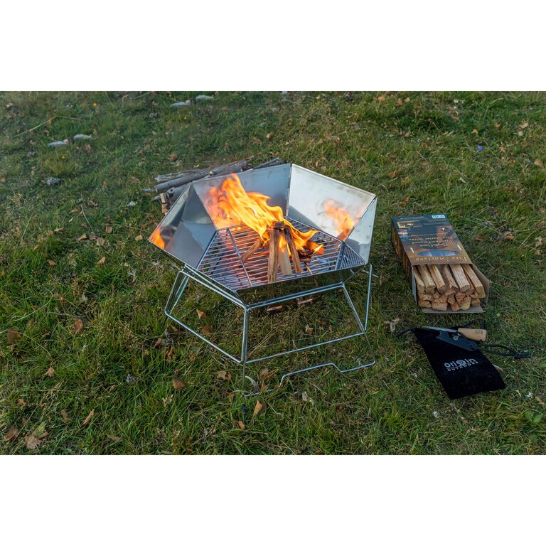 Přenosný skládací gril Hexagon Origin Outdoors nabízí velkou grilovací plochu v kompaktním skládacím provedení, které se snadno přenáší i skladuje. Šestihranný tvar pomáhá udržet stabilitu při grilování a zároveň chrání oheň před větrem. Hodí se na kempování, výlety i delší pobyt venku.