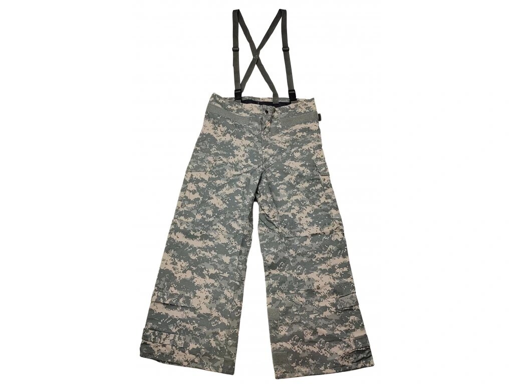 Kalhoty mají vyšší pas a jsou vybaveny nastavitelnými kšandami, které pomáhají udržet správnou pozici při nošení s další výstrojí. Stahování v pase i na koncích nohavic pomocí popruhů na suchý zip umožňuje přizpůsobení podle potřeby. Nechybí dvě stehenní kapsy pro uložení drobného vybavení.