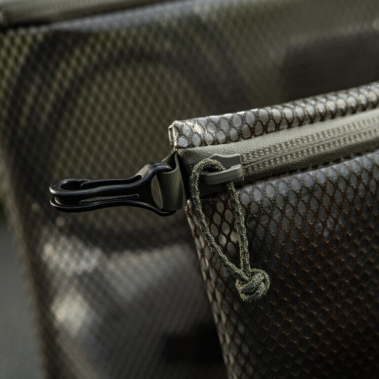 Sada obsahuje 3 kapsy velikostí S, M a L, díky kterým lze snadno třídit drobnosti podle účelu nebo priority. Menší se hodí na klíče, USB či mince, větší pojmou například doklady, nabíječky nebo hygienické potřeby. Přehledné rozvržení zkracuje čas hledání a zvyšuje efektivitu práce i pohybu. Organizéry jsou upevněny zipy YKK AquaGuard, které spolu s laminovaným materiálem chrání obsah před vodou a nepříznivým počasím.
