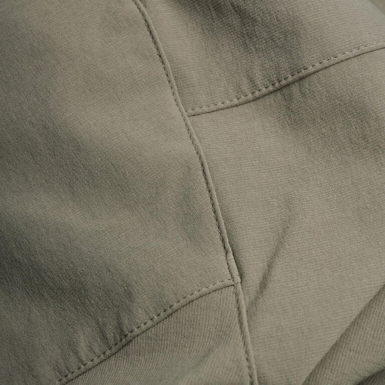 Tělo bundy tvoří Granite Stretch Thermal – čtyřsměrně pružný softshell s odolností vůči oděru, který zvládne i drsné podmínky. Rychle schne, odvádí vlhkost a drží tvar. Ramena a kapsy kryje pevnější Vector Lite, který snese batoh, popruhy i kontakt se skálou.