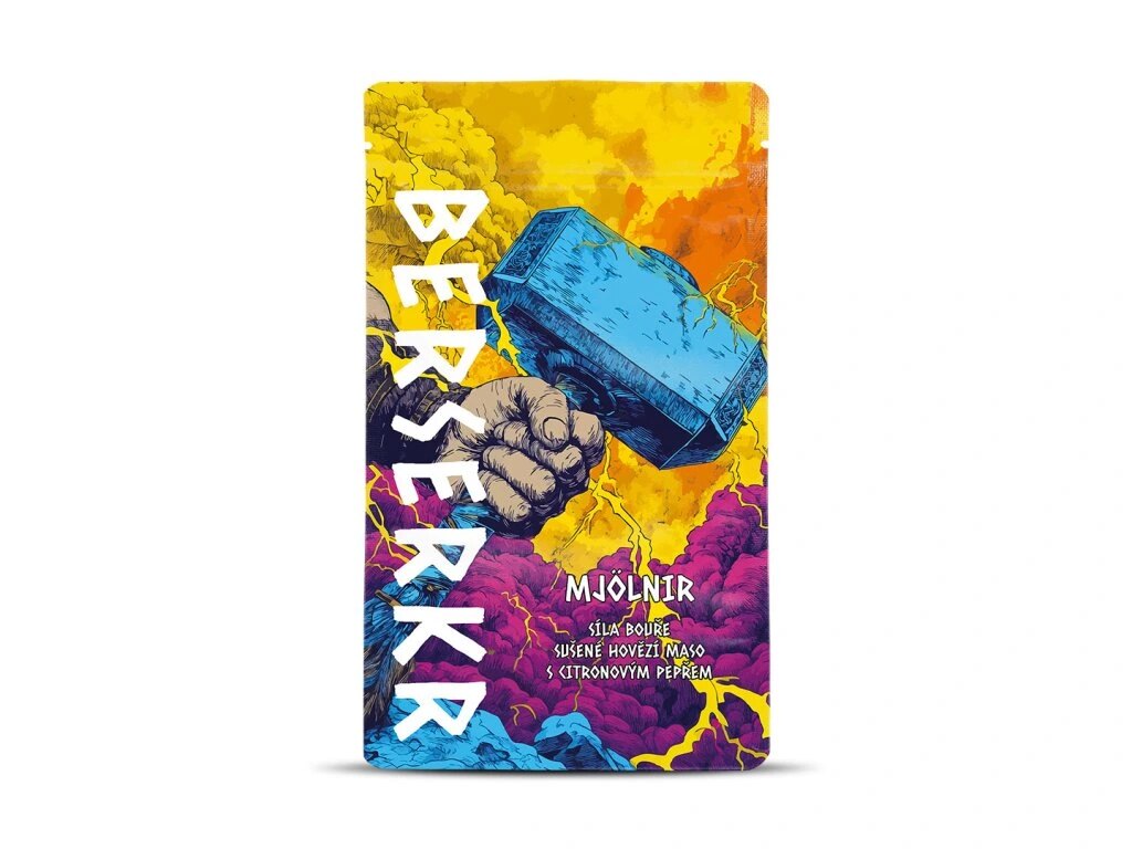 MJÖLNIR Citronový pepř Berserker® je sušené hovězí maso (beef jerky) s výraznou, svěží chutí kombinující citrusové tóny s jemnou pikantností směsi čtyř druhů pepře. Citron dodává masu lehkou svěžest, zatímco pepř zvýrazňuje jeho přirozenou chuť bez přehnané pálivosti. Díky způsobu zpracování je sušené maso praktickým a skladným snackem vhodným na cesty, do přírody i jako rychlá svačina během dne.